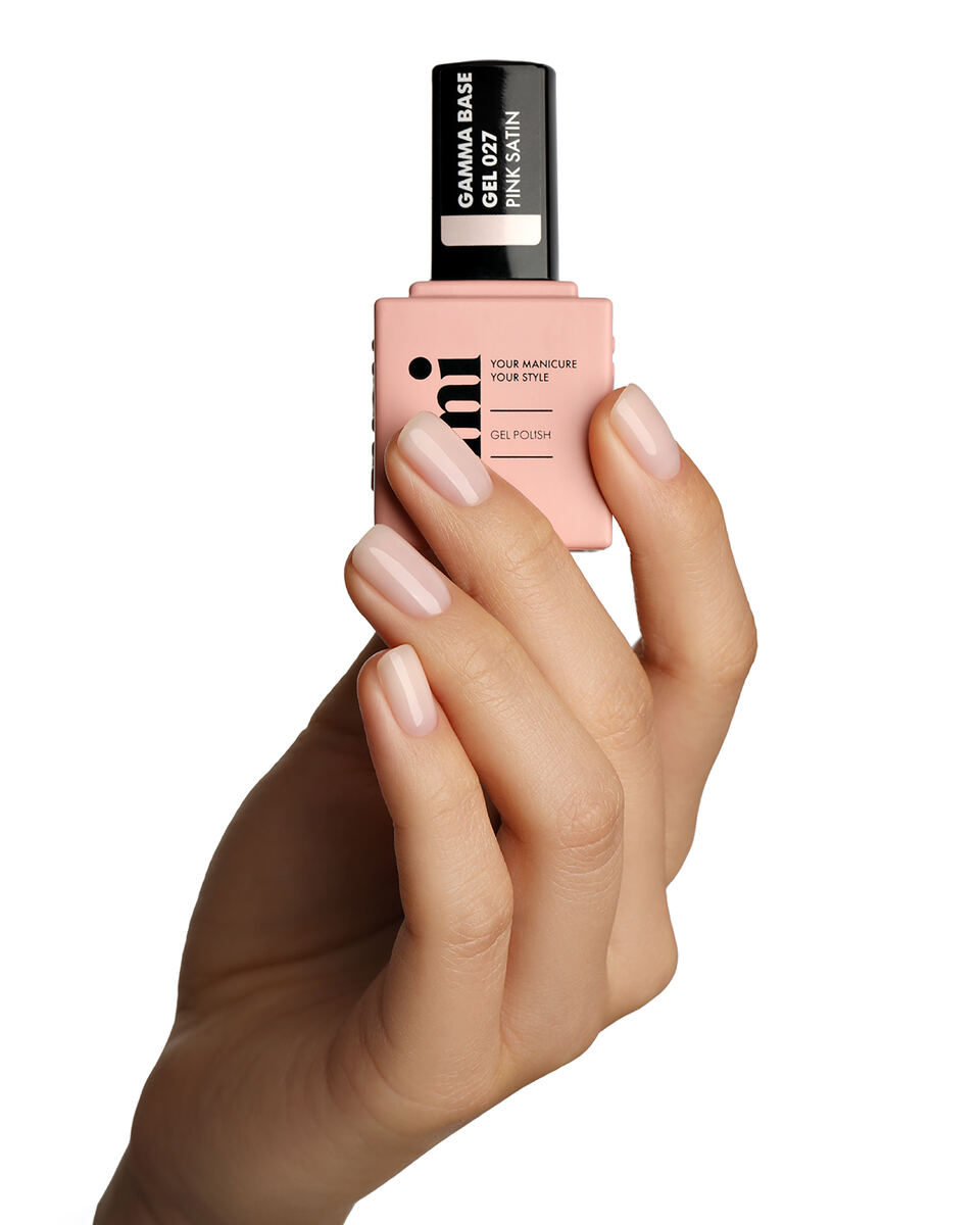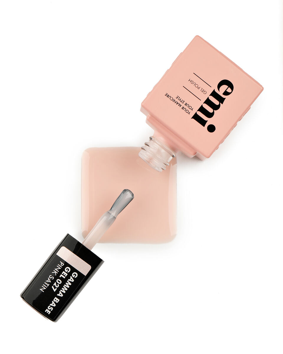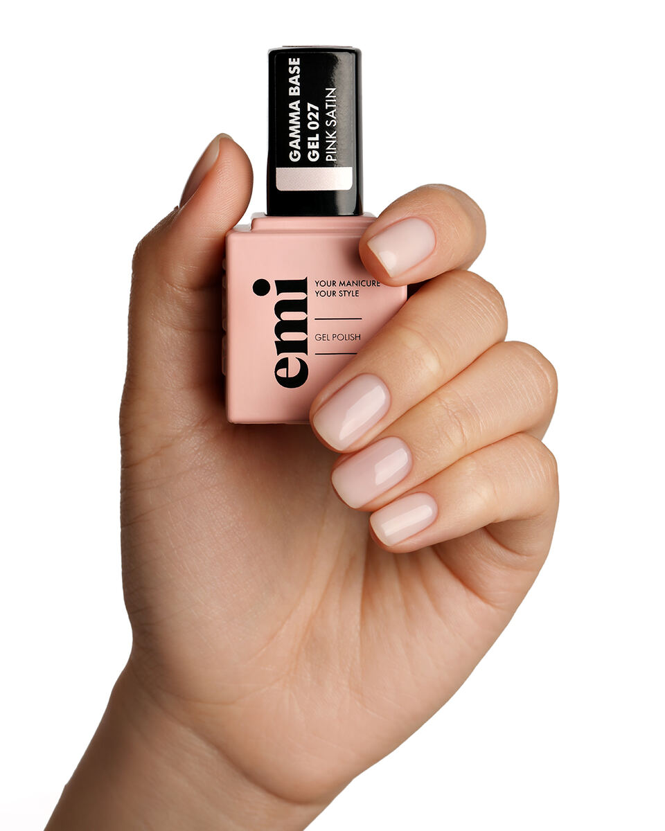 E.MiLac Gamma Base Gel №027 Pink satin – цветное базовое покрытие с ультражестким каркасом мягко выбеленного оттенка чайной розы.