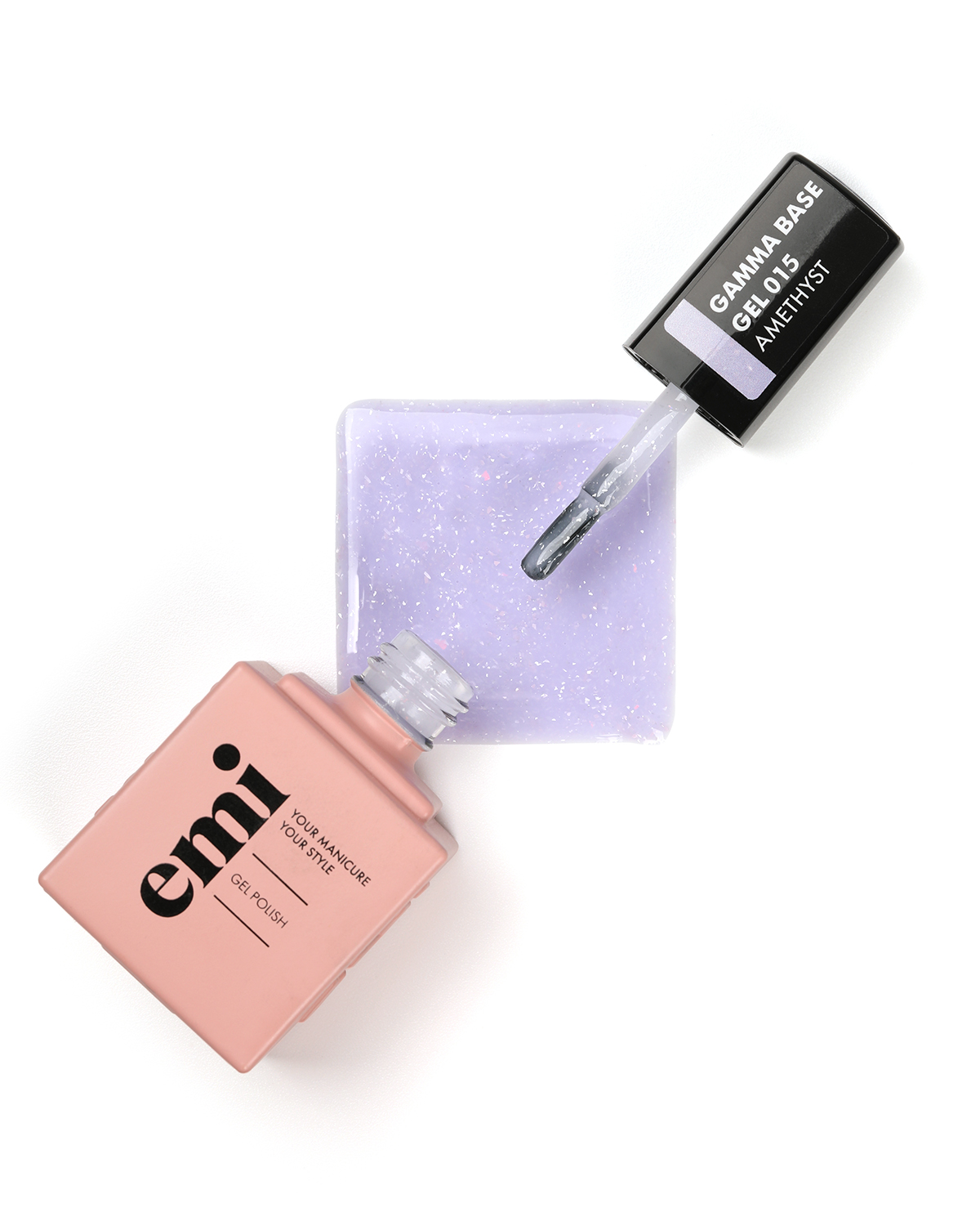 E.MiLac Gamma Base Gel Amethyst №015 – цветная база с хрустальным эффектом в формуле с ультражестким каркасом.