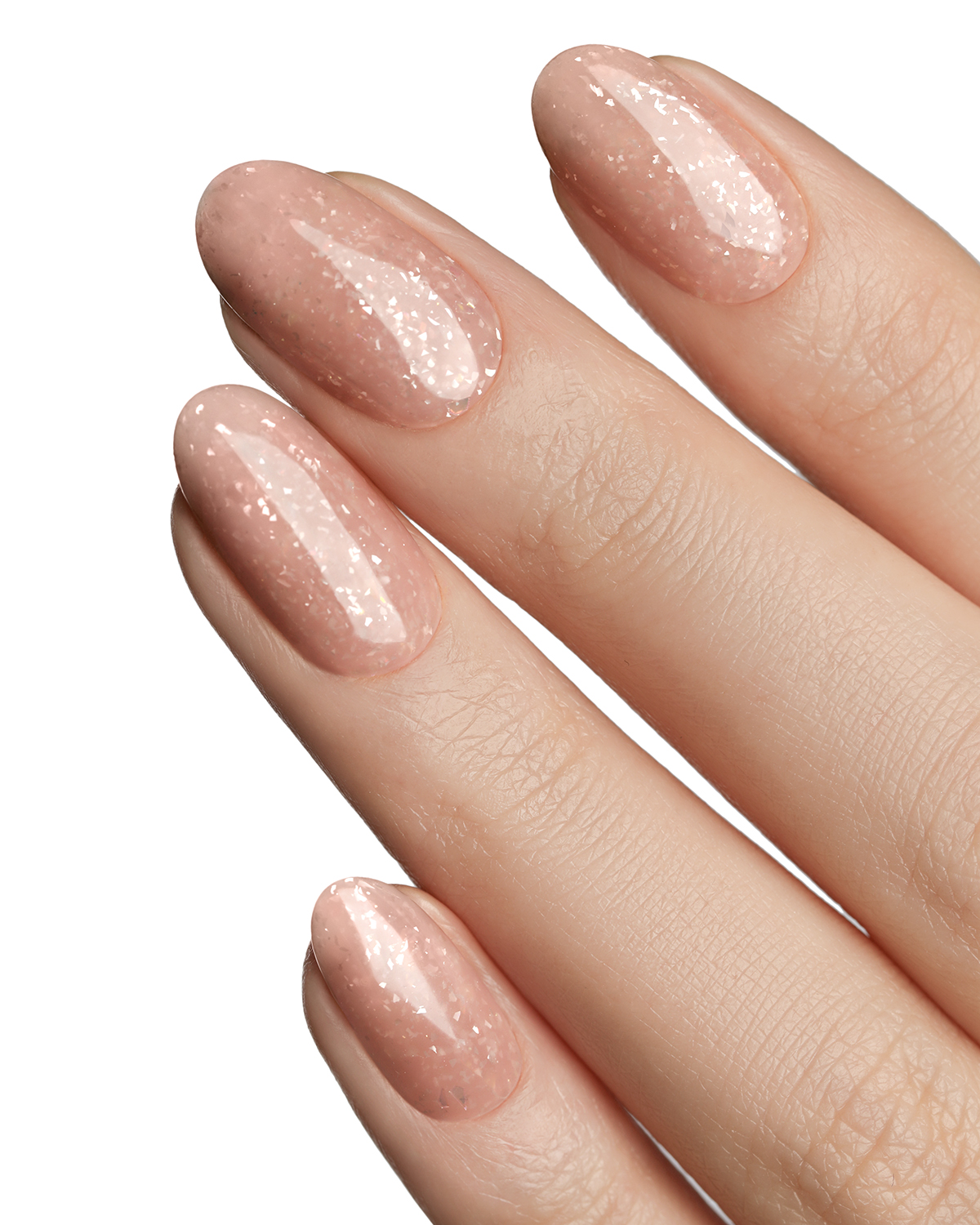 • Нюдовый бежевый с едва уловимыми частичками хрустальной потали.