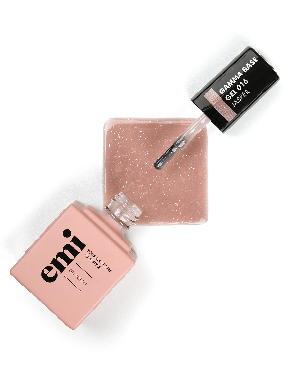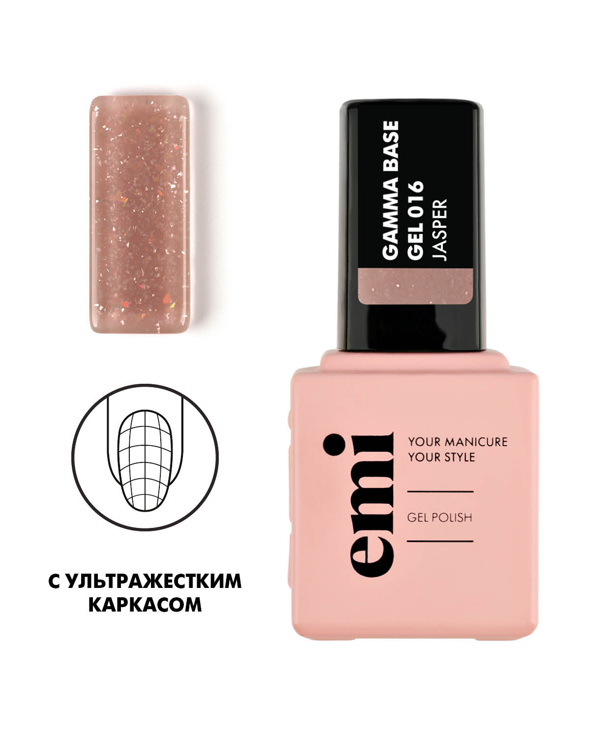 E.MiLac Gamma Base Gel Jasper №016 – цветная база с хрустальным эффектом в формуле с ультражестким каркасом.