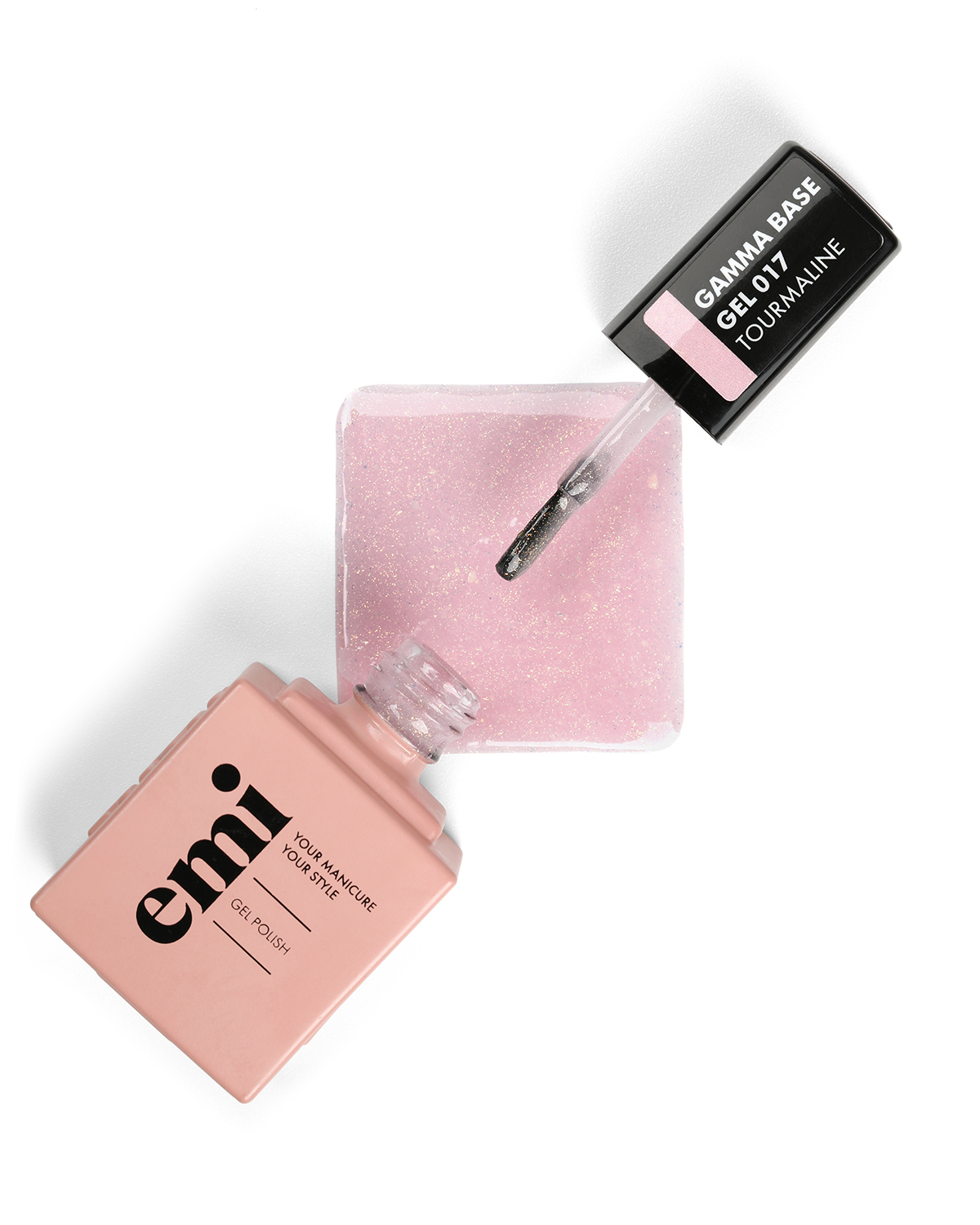 E.MiLac Gamma Base Gel Tourmaline №017 – цветная база с хрустальным эффектом в формуле с ультражестким каркасом.