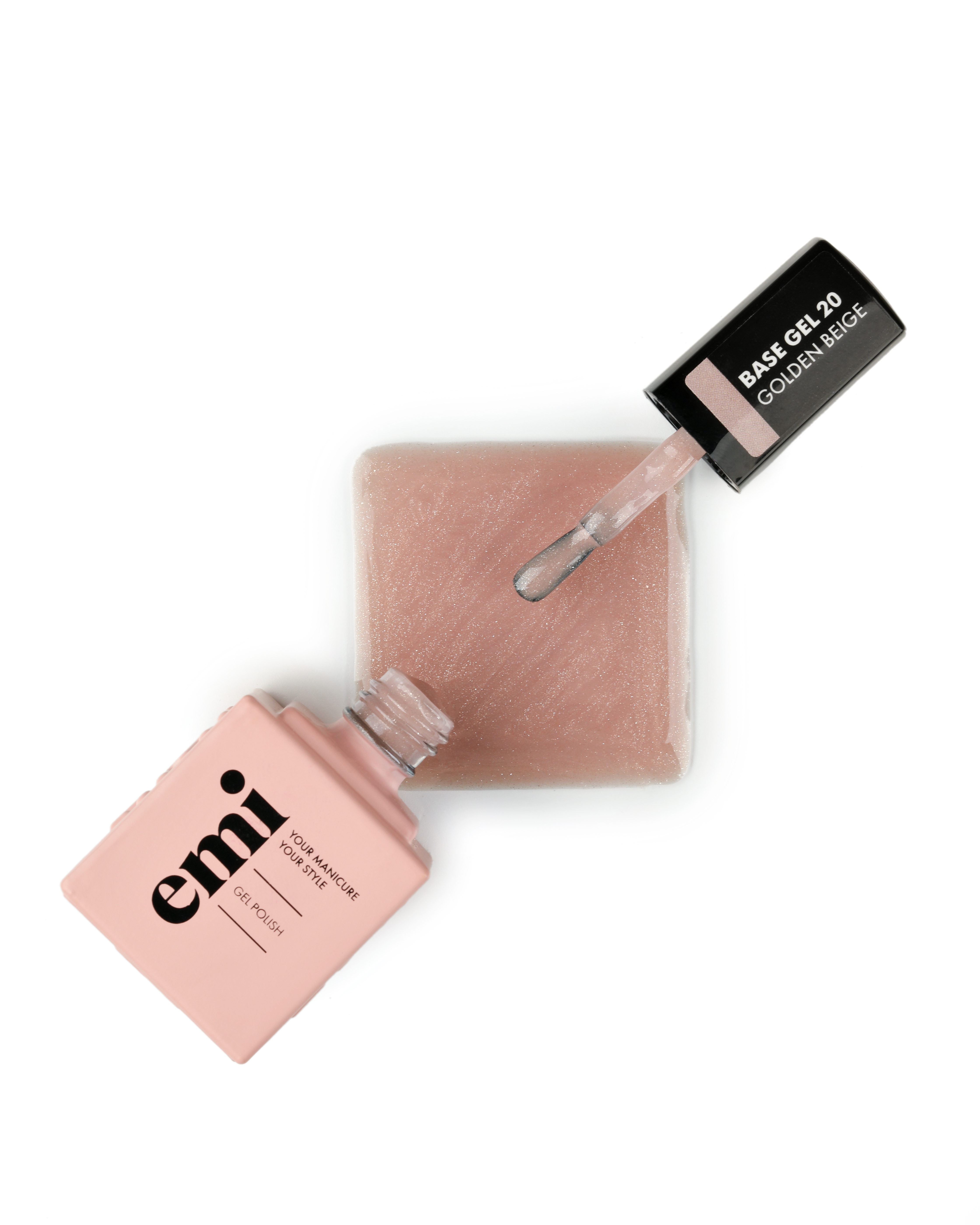 Камуфлирующее базовое покрытие E.MiLac Base Gel Бежевое золото №20 с жестким каркасом подходит для всех типов ногтей.