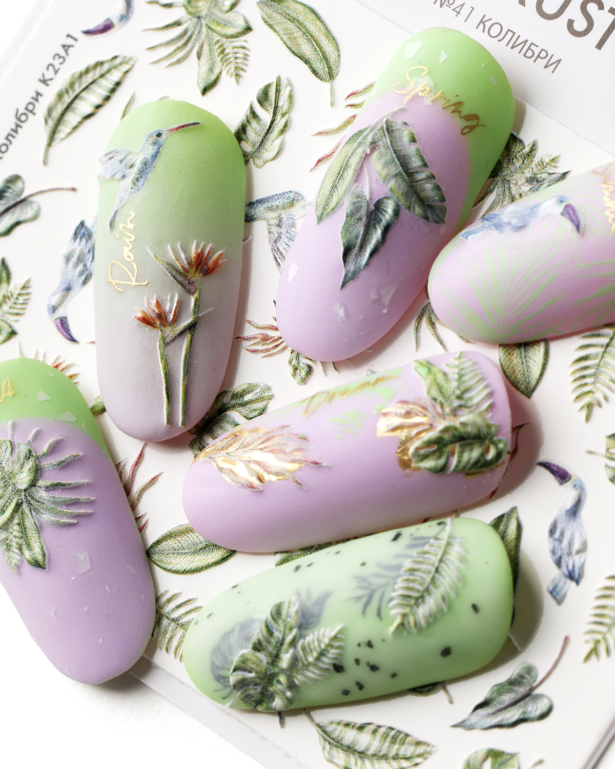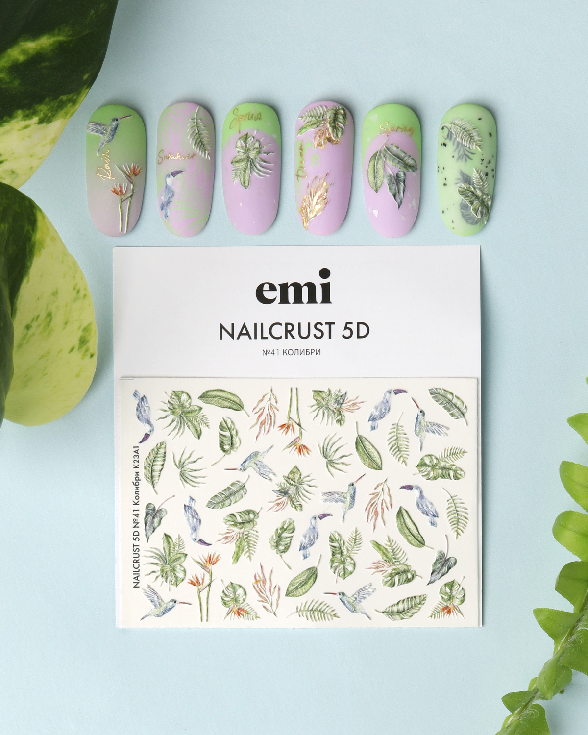 NAILCRUST 5D №41 Колибри – универсальные цветные наклейки для быстрых дизайнов на ногтях.