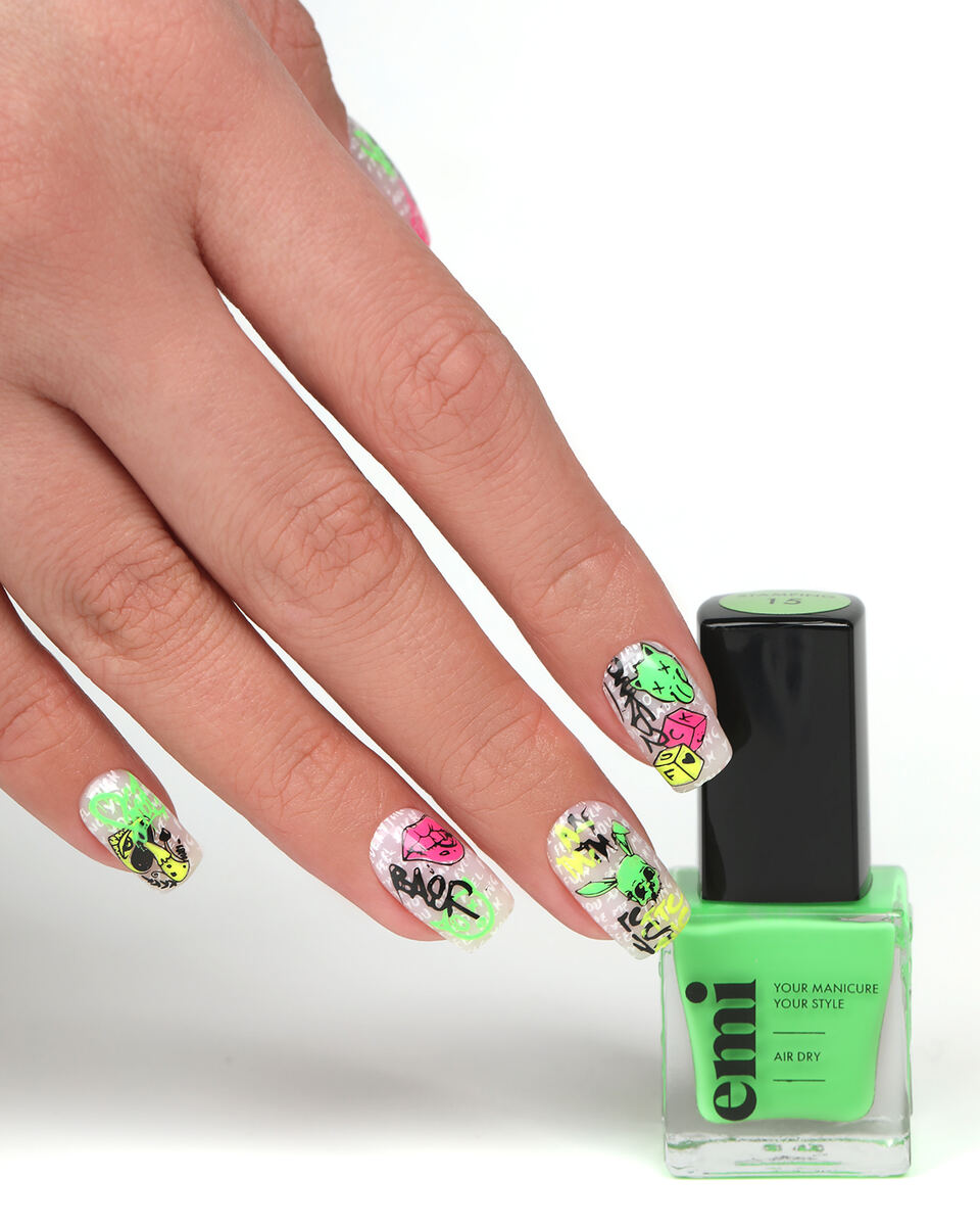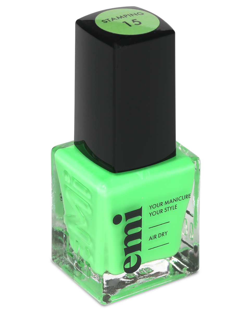 Профессиональный лак для стемпинга, дизайна ногтей №15 Ядовито-зеленый – универсальное цветное покрытие дерзкого зеленого оттенка, бросающего вызов обыденности.