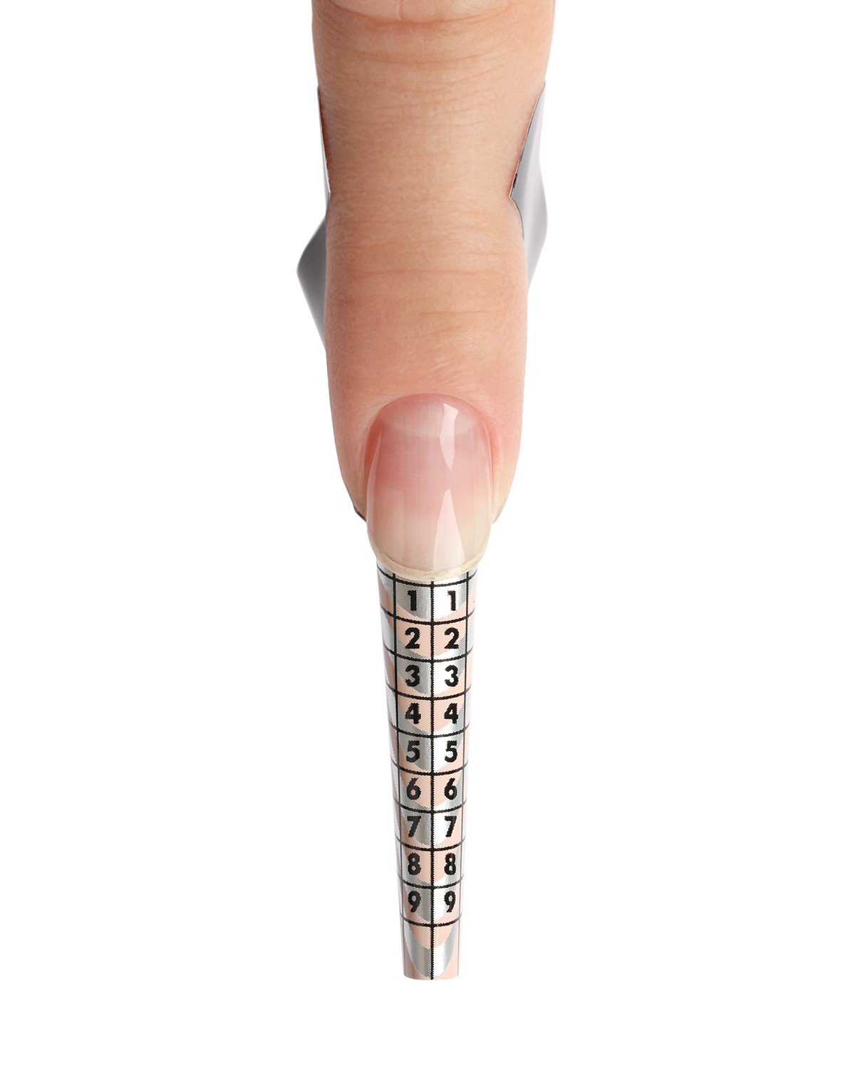 • Боковая разметка позволяет безошибочно подрезать форму, учитывая все анатомические особенности ногтевой пластины.
