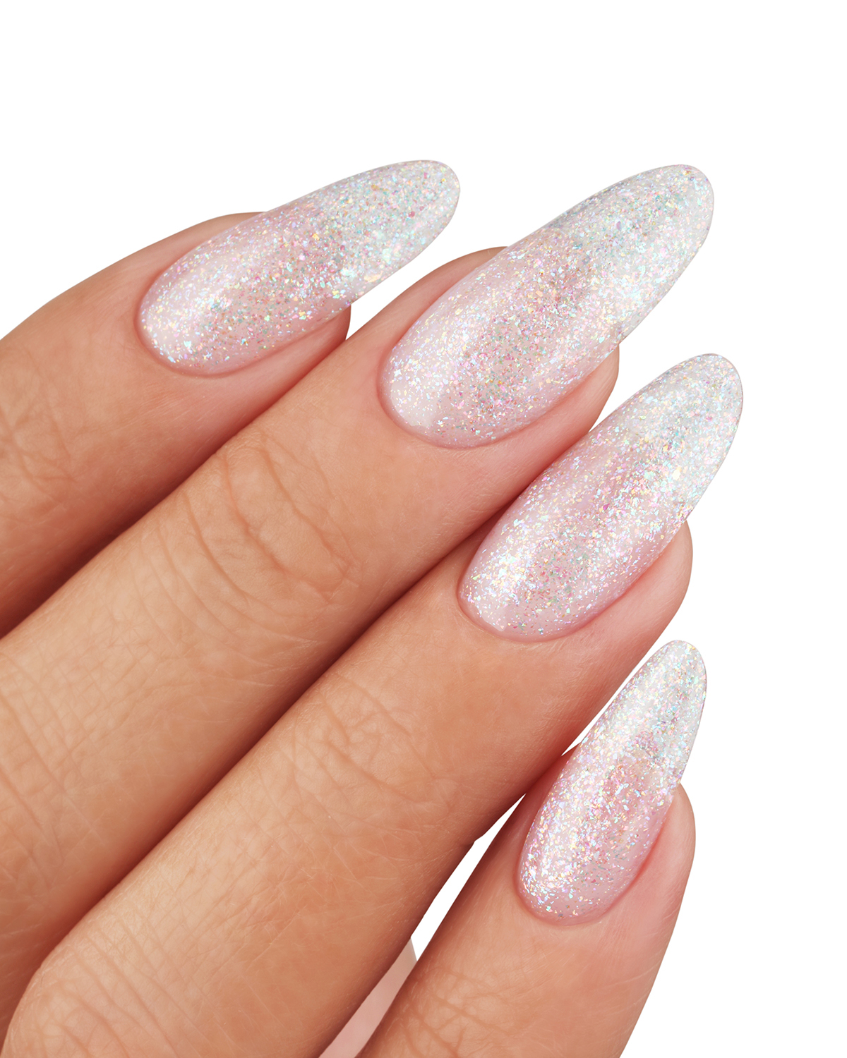 • Гипнотически переливающиеся грани сплетаются с прозрачной базовой основой, подчеркивая красоту натуральных ногтей, завораживая своими переливами и словно подсвечивая маникюр изнутри.