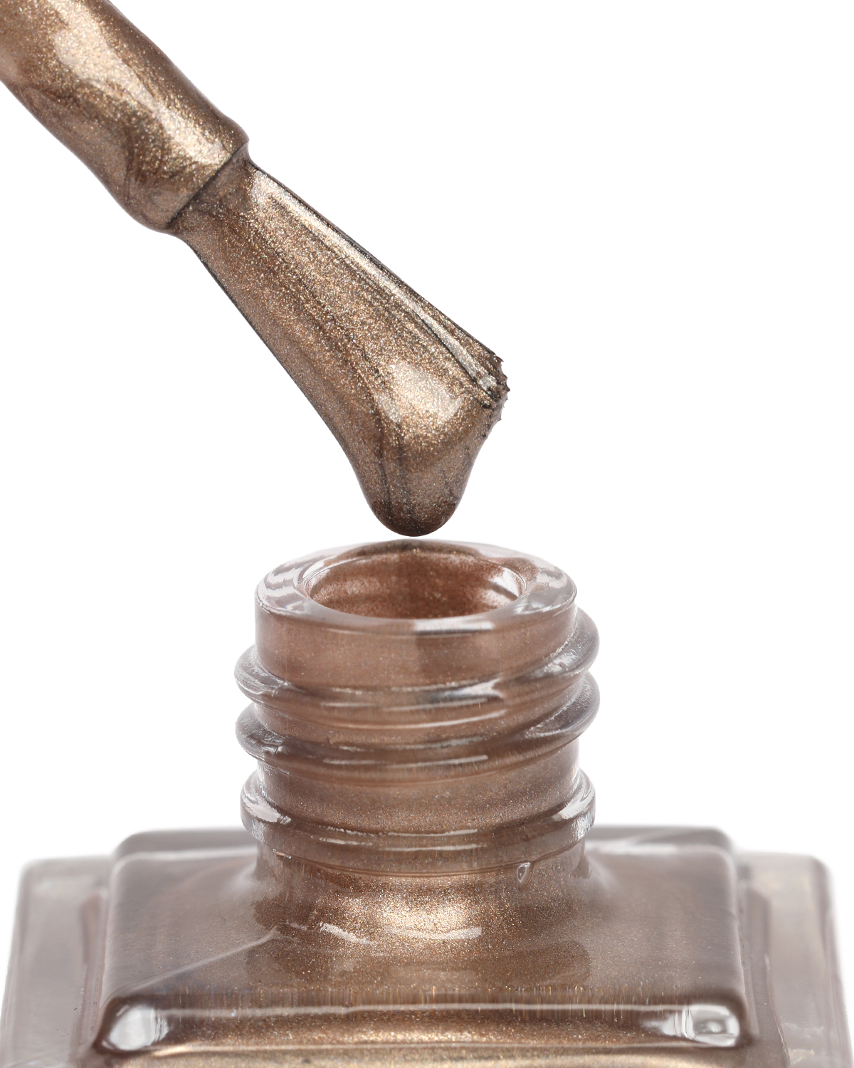 Ультрастойкий лак золотого оттенка с теплыми и мерцающими переливами Gel Effect Золотое переплетение №157 – универсальное цветное лаковое покрытие с гелевым эффектом для натуральных ногтей.